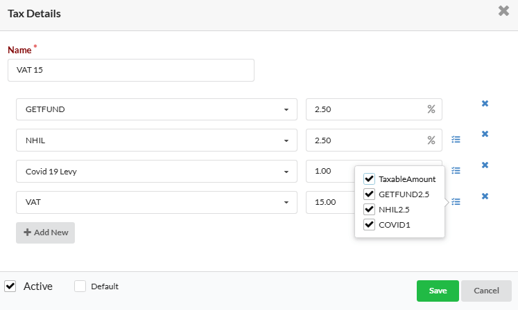 - Tax Type Name (e.g., VAT, NHIL, GETFund)