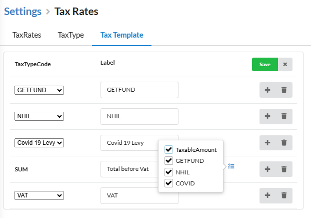 - Go to Settings → Tax Rates → Tax Template