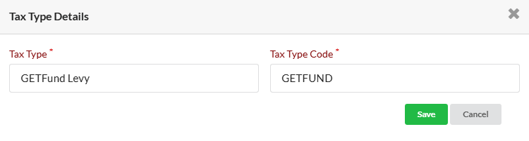 - Select TaxType Code (e.g., GETFUND)